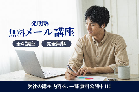 弊社ではe発明塾通信だけでなく、発明塾で指導している内容について知りたいという方向けに「無料メール講座」を開講しております。